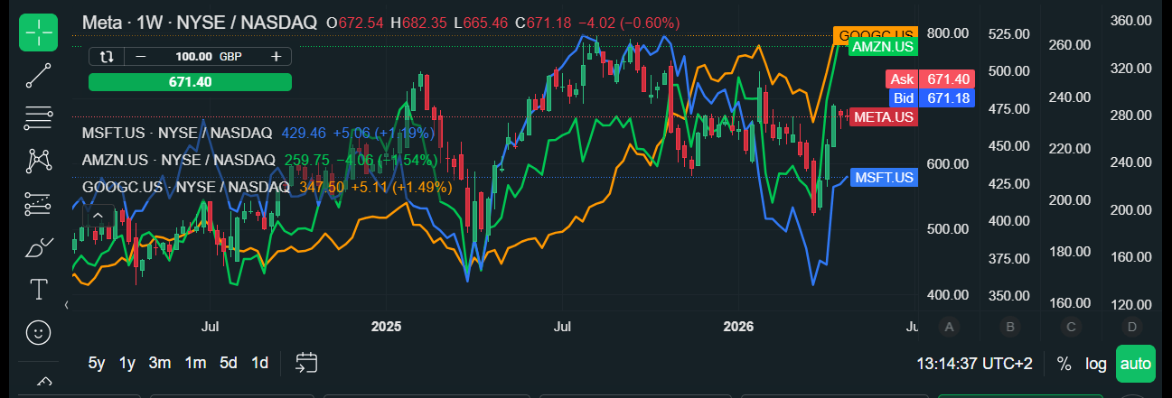 These results are also important for the broader market. These four companies, along with the rest of the Magnificent 7, have been crucial to the doubling of the S&P 500 in the last 4 years. Together, they are expected to commit to spending $600bn in AI investments this year, and the hyperscaler spending has also been crucial for other companies on the US index. For example, the chip makers like Arm Holdings, Nvidia and AMD, and memory chip makers like Sandisk, which is higher by 300% YTD, and CPU producer Intel, which is up 123% so far this year, all rely on hyperscaler spending to sustain their sales. If any of these companies suggest a slowdown in spending on AI investment is coming, then we could see a broad sell-off across the US tech space and US indices in the aftermath of these results.